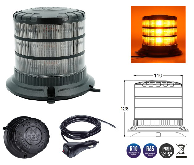 Faro lampeggiante a led BASE MAGNETICA con 2 lampeggi.Caratteristiche:Misure: 128 x 140HBa...