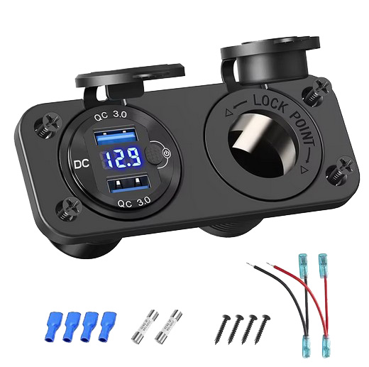 Caratteristiche:Caricabatterie con presa USB C3.0+PD DC 5V 3.1A a 2 porte, ingresso: 12-24...